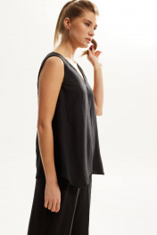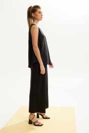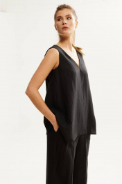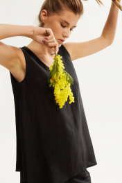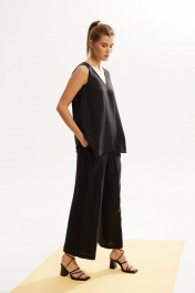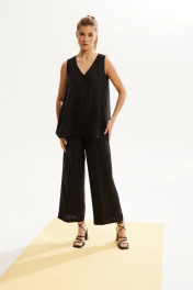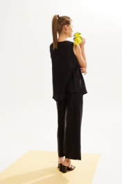 Лененый костюм с блузой и брюками с резинкой, летняя коллекция DAVA 142 черный