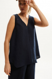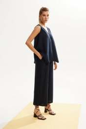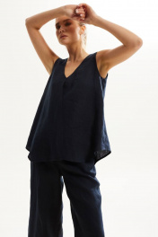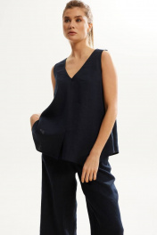 Леняной костюм с блузой и брюками на лето, свободный силуэт DAVA 142 синий
