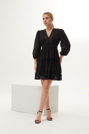 Платье из хлопка с ришелье, приталенное, с потайной молнией DAVA 153 черный