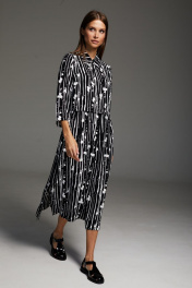 Платье свободного силуэта из вискозы с карманами DAVA 172 черный-белый