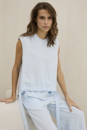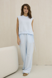 Комплект из льняной блузы и прямых брюк на каждый день DAVA 2207 голубой