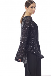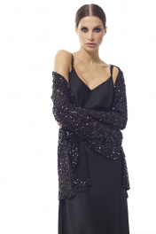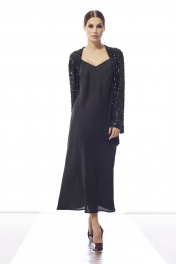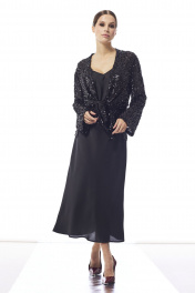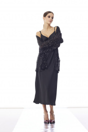Комплект женский ,состоящий из блузы и платья - комбинации . Блуза распашная ,свободного силуэта , по боковым швам расположены разрезы . Платье полуприлегающего силуэта , выкроено по косой.Бретели регулируются .