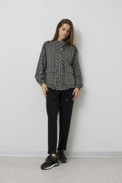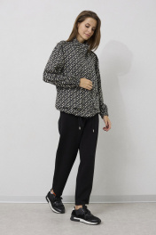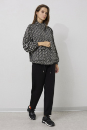 Жакет женский свободного силуэта . Выполненный из трикотажного полотна .Жакет с центральной застежкой в виде планки с молнией и кнопками , рукав втачной одношовный с резинкой по низу . По переду жакета функциональные карманы с клапанами. Снизу жакета расположена кулиса с отделочным шнуром . Брюки свободного силуэта , заужены у низу . Верх брюк обработан притачным поясом с резинкой . В верхней части брюк расположены карманы .