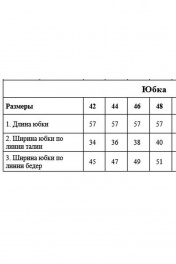 Юбка из экокожи, прилегающего силуэта, с посадкой на талии, длиной ниже колена. Перед и спинка с талиевыми вытачками, со средним швом и горизонтальным подрезом ниже линии бёдер. Средний шов спинки с застёжкой на потайную молнию и шлицей. В нижней части боковых швов металлические молнии. Пояс с застёжкой по спинке, на пробивную кнопку.
