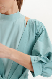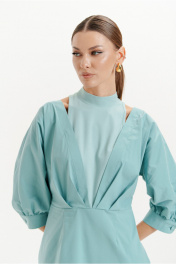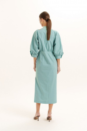 Красивое, стильное и элегантное платье прямого силуэта выполнено из хлопкового полотна и элит трикотажа. Модель платья классика с рукавом 3/4 ЛЕТУЧАЯ МЫШЬ, низ рукава на манжете. Горловина оформлена воротником - стойка из отделочной ткани с застежкой по спинке на потайную молнию , что делает платье универсальным нарядом в гардеробе любой женщины или девушки. На платье обработан подрез со складками. По боковому шву разрез. Платье можно дополнить аксессуарами и получить различные праздничные и нарядные образы, а свободный крой оверсайз скроет недостатки и сделает акцент на ваших достоинствах.