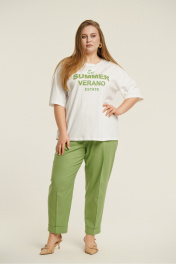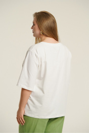 Джемпер свободного покроя из тонкого трикотажного полотна. Вырез горловины- неглубокий, округлой формы с отрезной планкой. Рукава- со спущенной линией плеча. Изделие декорировано печатным принтом.