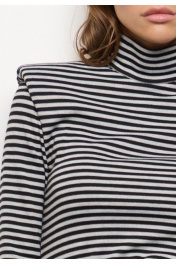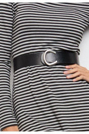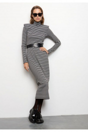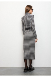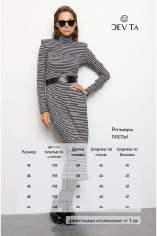 Трикотажное платье в полоску –стильное и элегантное решение для современного гардероба. Модель выполнена из плотного трикотажа, который обеспечивает комфорт и согревает. Высокий воротник, длинные рукава и акцентные плечи создают элегантный силуэт, а лаконичный крой делает платье подходящим как для повседневных, так и для деловых образов. В комплект к платью входит черный ремень с декоративной пряжкой из качественной экокожи. Стилизация поясом подчеркнет талию, добавит силуэту женственности. Платье отлично сочетается с разной обувью – от классических ботильонов до массивных ботинок, позволяя экспериментировать с настроением образа. Измерения готового изделия расположены в табличке с фотографиями.