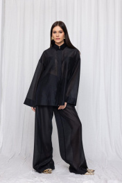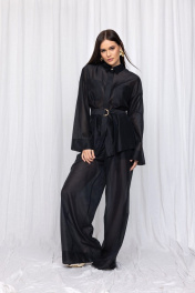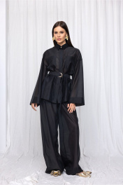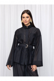 Элегантная и воздушная рубашка, созданная из премиальной вискозной ткани, обеспечит вам непревзойдённый комфорт и лёгкость. Сочетание классического стиля с элементами модного дизайна делает эту удлиненную блузку универсальной и подходящей для различных случаев. Прямой силуэт. Широкий длинный рукав на спущенной пройме. Аккуратная потайная застёжка на планку с пуговицами. Воротник стояче-отложной с акцентной пуговицей на стойке. Накладные карманы по линии груди. На спинке кокетка с центральной складкой. Широкая подгибка низа изделия и рукава. В комплекте пояс с полукольцами закреплен узкими шлёвками в боковых швах. Статусная вещь с различными вариантами стилизации в стиле old money. Составят богемный образ в паре с брюками палаццо из аналогичной ткани и цвета арт. 3011-5.