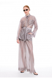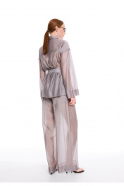 Элегантная и воздушная рубашка, созданная из премиальной вискозной ткани, обеспечит вам непревзойдённый комфорт и лёгкость. Сочетание классического стиля с элементами модного дизайна делает эту удлиненную блузку универсальной и подходящей для различных случаев. Прямой силуэт. Широкий длинный рукав на спущенной пройме. Аккуратная потайная застёжка на планку с пуговицами. Воротник стояче-отложной с акцентной пуговицей на стойке. Накладные карманы по линии груди. На спинке кокетка с центральной складкой. Широкая подгибка низа изделия и рукава. В комплекте пояс с полукольцами закреплен узкими шлёвками в боковых швах. Статусная вещь с различными вариантами стилизации в стиле old money. Составят богемный образ в паре с брюками палаццо из аналогичной ткани и цвета арт. 3011-5.
