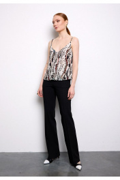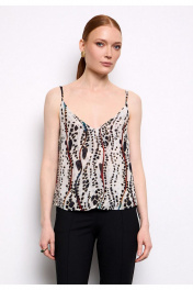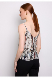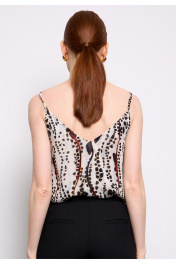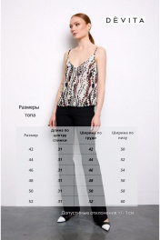 Топ на бретелях из двойного итальянского вискозного шифона. Прямой силуэт. Перед с нагрудными выточками от бокового шва. Регулируемые бретели позволяют настроить длину по вашему желанию. Топ с изысканным принтом привнесет в гардероб нотку шика.