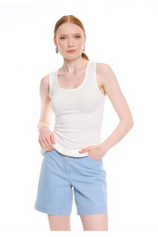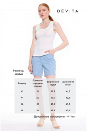 Блузка женская из хлопкового трикотажного полотна «Кашкорсе». Майка без рукавов, прилегающего силуэта, длиной выше линии бёдер. Горловина округлой формы. Пройма и горловина обработана бейкой.