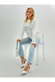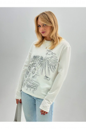 Джемпер из трикотажа с авторским принтом и шелкографией DEVITA 8001 молочный