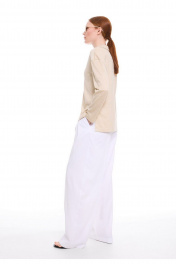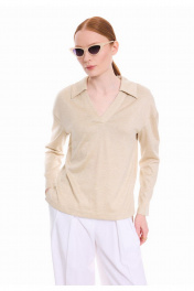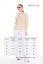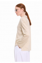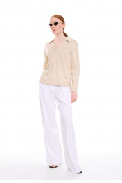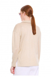 Свободный прямой лонгслив из премиального трикотажного полотна природного оттенка. Отложной воротник-поло и V-образный вырез горловины с планкой -неотъемлимый тренд этого сезона. Спинка с ассиметричным низом и разрезами в боковых швах. Лаконичный дизайн делает этот джемпер уместным в любой ситуации, обеспечивая комфорт и стиль в течение всего дня.