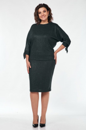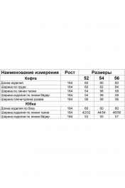Костюм женский с юбкой из трикотажного полотна с блеском. Юбка длиной за колено, зауженная к низу. Заднее полотнище сверху на резинке. Кофта с горловина округлой формы. Рукав цельнокроенный с плечом. По низу на манжетах и завязках.
