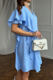 Летнее платье А-силуэта из льна с воланами и V-вырезом Dilana VIP 2049 голубой