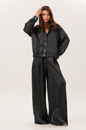 Брюки широкие с притачным поясом на резинке и карманами по боковым швам.