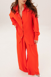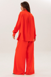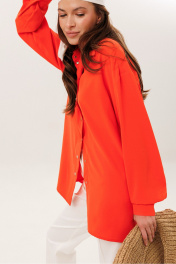 Блузка удлиненная чуть ниже бедер прямого силуэта. Воротник рубашечного типа. Рукав с манжетой на две кнопки. По боковым швам разрезы. Застежка на кнопки.