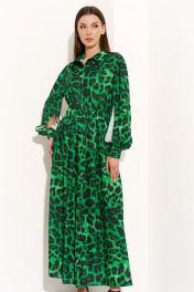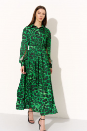 Платье полуприлегающее на запах с складками из текстиля DILIA 0753 зеленый