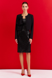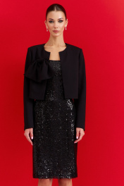 Нарядный костюм из текстиля: жакет и платье с разрезом DILIA 0907 черный