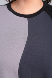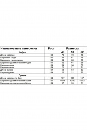 Комплект брючный блузон + кюлоты.Блузон полуприлегающего силуэта, по переду кокетка , рукав цельнокроенный манжет притачной. Горловина обработана обтачкой. Кюлоты с кокеткой на задней половинке, верхний срез обработан поясом с резинкой на задней половинке. Застёжка тесьма-молния и петли пуговицы на пердней половинке. Длина по спинке 67 см, длина рукава 50 см., длина кюлот 90 см