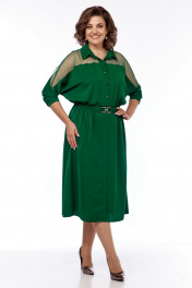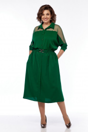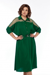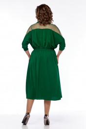 Зеленое расклешенное платье с поясом на резинке и прозрачным верхом Диомант 2012 зеленый