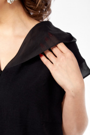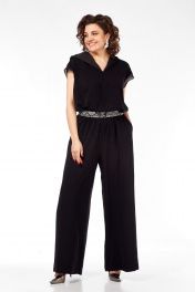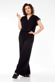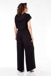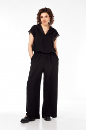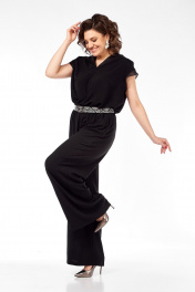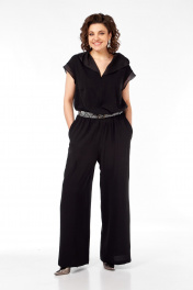 Комбинезон женский свободного кроя с застежкой на потайную молнию спереди и петлю и пуговицу сзади. Перед с нагрудными вытачками. По линии талии собран на резинку. Боковые карманы обработаны в швах. Рукав-крылышко из отделочной ткани со спущенным швом и "капелькой" для удобства при надевании и снятии. ПОЯС МОЖЕТ ОТЛИЧАТЬСЯ ОТ ФОТО!!!