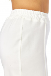 Комплект брючный состоит из кофты и брюк. Кофта прямого силуэта с рукавом реглан, с центральной застежкой на тесьму-молнию. По переду накладные карманы. Капюшон с кулисой и шнуром. По низу изделия и рукава манжеты из отделочной ткани. Брюки широкие, верхний срез обработан поясом с резинкой, по передней половине застрочены стрелки. Длина по спинке 65 см, длина рукава 70 см. Длина брюк 109 см.