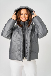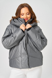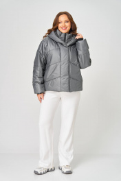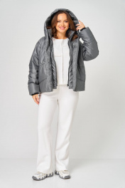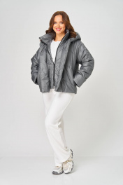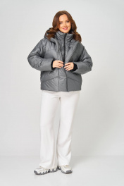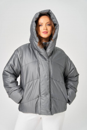 Куртка женская с центральной застёжкой на молнию и потайные кнопки. Спинка с горизонтальной стяжкой. Полочка выстегана по косой. В бококвых швах обработаны карманы. Рукав втачной одношовный с трикотажными манжетами из-под подгибки. Воротник-капюшон переходящий в планку с кнопками. Внутренний воротник-стойка с манишкой на молнии. Куртка на утеплителе. Температурный режим до - 10 градусов. Длина по спинке 63-66 см, длина рукава 60-61 см.