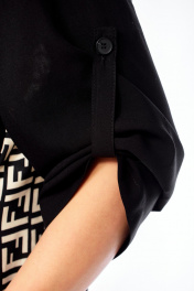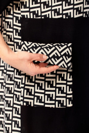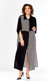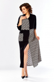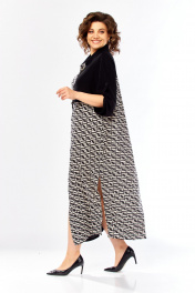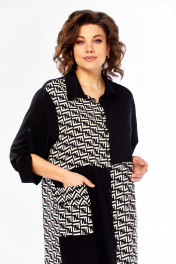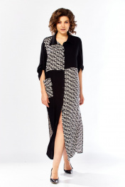 Платье женское свободного кроя с центральной застежкой на петли и пугоцы. Спинка окрглой формы. Перед с подрезом на талии. Платье из 2-ух видов ткани, расположенных в шахматном порядке. На правой половине боковой накладной карман с клапаном. Воротник рубашечный на стойке. Рукав втачной одношовный длиной 7/8 с хлястиком с возможностью регулировки длины. Длина по спинке 129 см. Длина рукава 49 см. 54 56 58 Длина изделия 129 129 129 Ширина изделия по линии груди 62 64 66 Ширина изделия по линии талии 63 65 67 Ширина изделия по линии бёдер 65 67 69 Ширина спины 45,5 46 46,5 Ширина плеча 15,5 15,5 15,5 Длина рукава 49 49 49 Шириан рукава 23 24 25