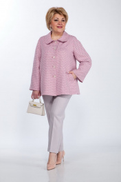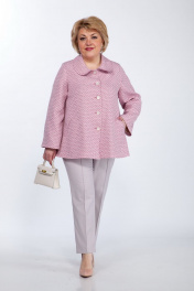 Жакет силуэта трапеция с двумя прорезными карманам. Спинка со средним швом. Рукав втачной двухшовный, длинный. Центрально-бортовая застежка на 6 петель и пуговиц. Воротник стояче-отложной. Жакт на подкладке.