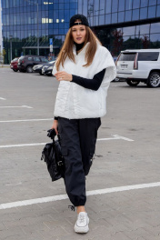 Стеганый жилет оверсайз с капюшоном и молнией DOGGI 0144 белый