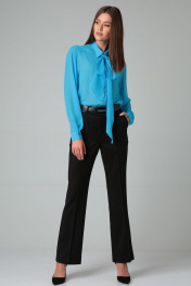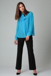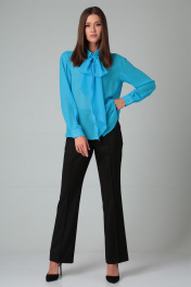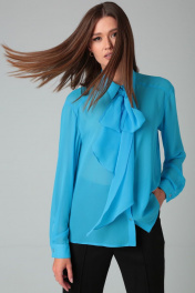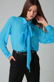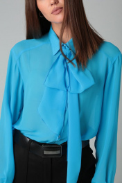 Шифоновая классическая блузка с воротником и длинным рукавом DOGGI 085 голубой
