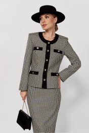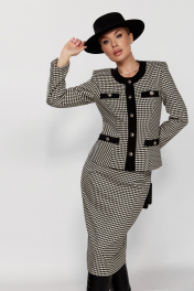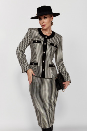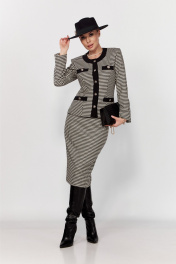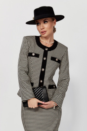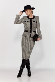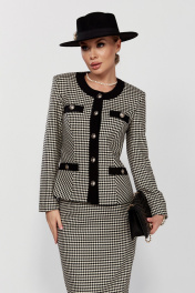 Костюм из трикотажа в стиле CHANEL с юбкой и жакетом DOGGI 1645 бежевый+черный