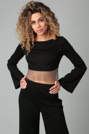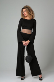 Очаровательный, эффектный, комплект 2-ка из высококачественной трикотажной ткани. Укороченный Топ украшеный тесьмой "каскад ", вырез горловины лодочка. Рукав втачной, расширен к низу. В боковом шве потайная молния. Брюки на завышеной талии, рсширены от линии бедра, пояс на обтачке, застежка молния в боковом шве. длина топа-29см длина рукава-61 см длина брюк- 111см параметры 42 44 46 топ обхват груди 84 88 92 обхват плеча 26 28 30 брюки обхват талии 62 66 70 обхват бедер 90 94 98 ширина по низу 32 32 32.5