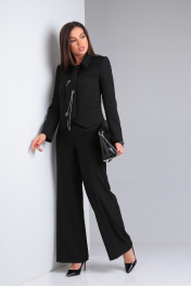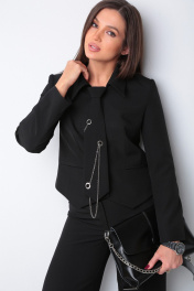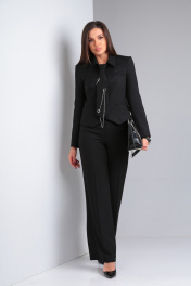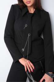 "Настоящее произведение искусства среди офисных нарядов – вечерний классический костюм с галстуком. Уверенность и элегантность, этого костюма делает его идеальным выбором для важных деловых встреч, корпоративных мероприятий и незабываемых вечерних выходов. Изысканный комплект тройка выполнен из качественной стрейчевой ткани. Начнем с жакета, который с первого взгляда восхищает своим уникальным дизайном. Вы будете чувствовать себя настоящей леди, демонстрируя свою приверженность стильным решениям. Рукав втачной, низ жакета фигурный, застежка на петли, пуговицы. Брюки прямого покроя расширены от линии бедра на поясе со шлевками, которые никогда не выйдут из моды, подчеркнут вашу женственность и добавят дополнительную длину к вашим ногам. Застежка молния спереди. Завершающий штрих, Галстук декорирован блочками и цепью. Он придает утонченности вашему образу и делает его более формальным, подчеркивая вашу властность и уверенность."