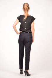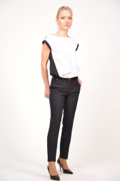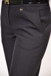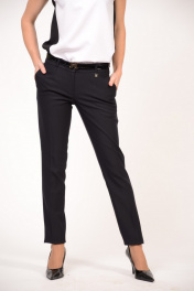 Женские классические зауженные брюки средней посадки на притачном поясе. Пояс со шлевками, что позволяет регулировать талию с помощью ремешка, а так же дополнить им образ. Карманы в боковых швах с отрезным бочком, а на задних половинках брюк - имитация прорезных карманов. Брюки со стрелками, которые вытягивают силуэт и делают фигуру стройнее.
