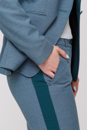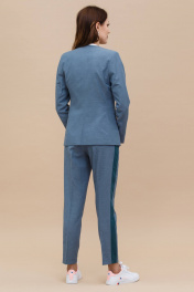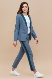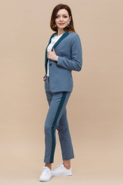 Голубой костюм из вискозы с лампасами на брюках и жакете Domna 16042 серо-зеленый