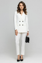 Белые костюмный жакет и брюки из текстиля для делового образа Domna 16076 молочный(170)