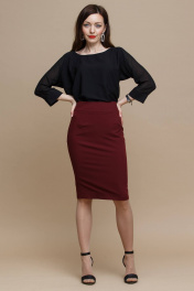 Зауженная юбка с разрезом из вискозы для делового стиля Domna 71077 бордовый