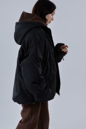 Объемная, утепленная куртка выполнена из плотного курточного материала. Застежка центральная на молнии. Объем изделия и манжеты - регулируются благодаря кулиске с фиксаторами. Бережная стирка при температуре 40 градусов, отжим 800об. Длина рукава - 81,3 см Длина изделия по спинке от края горловины - 73 см Обхват груди - до 110 см Обхват бедер - до 102 см