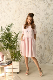 Платье с оригинальной печатью и коротким рукавом реглан Edibor 1080 розовый