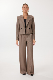 Укороченный двубортный жакет на подкладке полуприлегающего кроя с четкими лацканами. Графика рисунка на элементах жакета обыграна сменой направления полоски для создания архитектурного эффекта. Универсальная модель для делового гардероба, отлично сочетается с платьями, юбками и брюками из нашей коллекции. Длина изделия 50.5 см