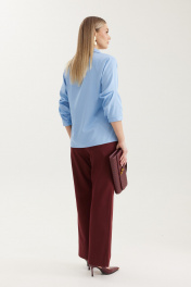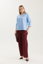 Блузка из лёгкой  струящейся вискозы  небесно‑голубого оттенка с V‑образным вырезом. Рукава  ¾ создают изящный акцент, благодаря эффектной сборке.   Блузка свободного кроя, что позволяет чувствовать себя легко и комфортно.  Модель  легко сочетается с классическими брюками или юбкой, формируя элегантные и современные образы.