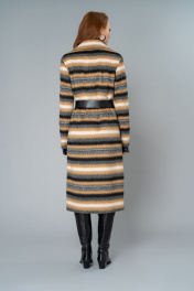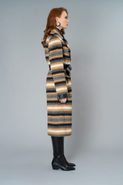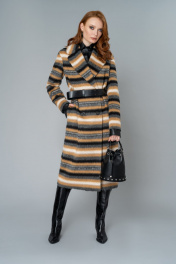 Пальто бежевое демисезонное с ремнем и английским воротником Elema 1-10052-1-170 полоска