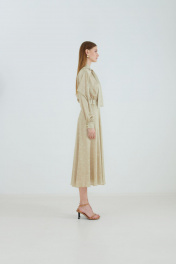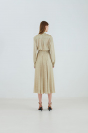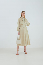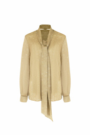 Демисезонная бежевый блуза с разрезами и шарфом Elema 2К-10989-1-164 принт_песочный