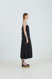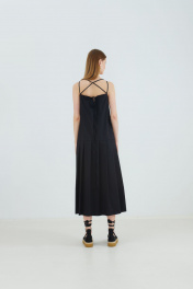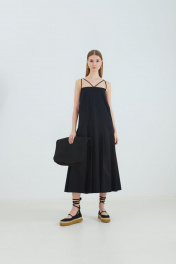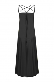 Платье женское, расширенное книзу, длиной макси. Нижняя часть переда и спинки с односторонними складками. Платье на бретелях.