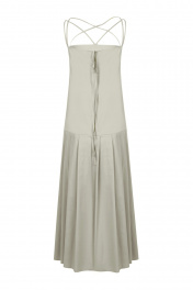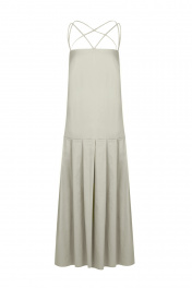Платье женское, расширенное книзу, длиной макси. Нижняя часть переда и спинки с односторонними складками. Платье на бретелях.