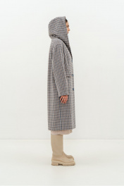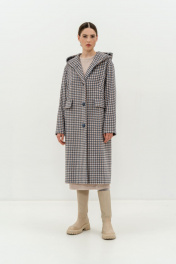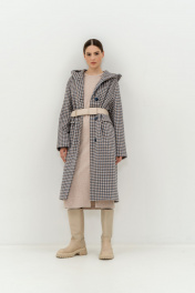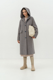 Пальто серое утеплённое из пальтовой ткани и шерсти Elema 6-11083-2-164 клетка