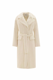 Пальто демисезонное прямое искусственный мех белое Elema 6-12214-1-164 молоко
