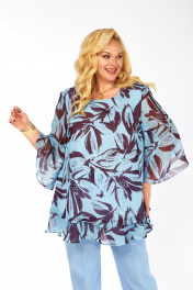 Блуза Элль-стиль 2213/12а голубой_кофе